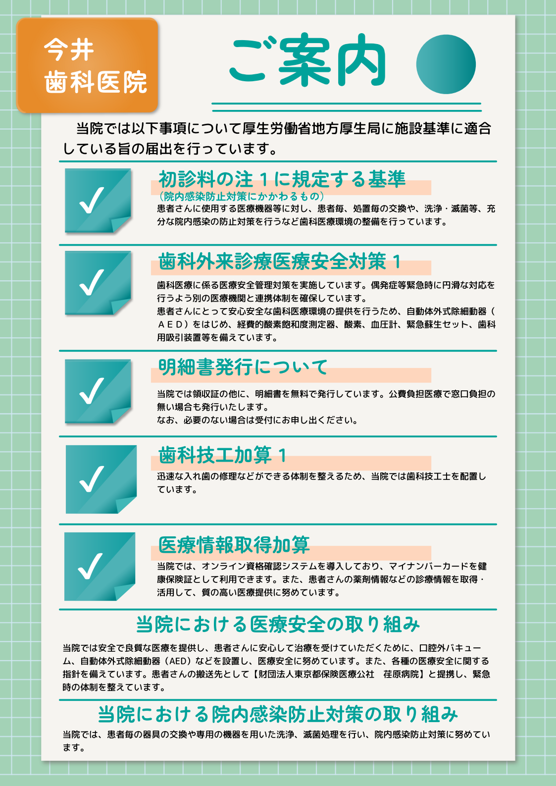 世田谷今井歯科医院受付世田谷今井歯科医院では、平成6年3月の開院以来、虫歯治療などの一般歯科治療はもちろん、歯周病治療や口腔外科なども行っております。